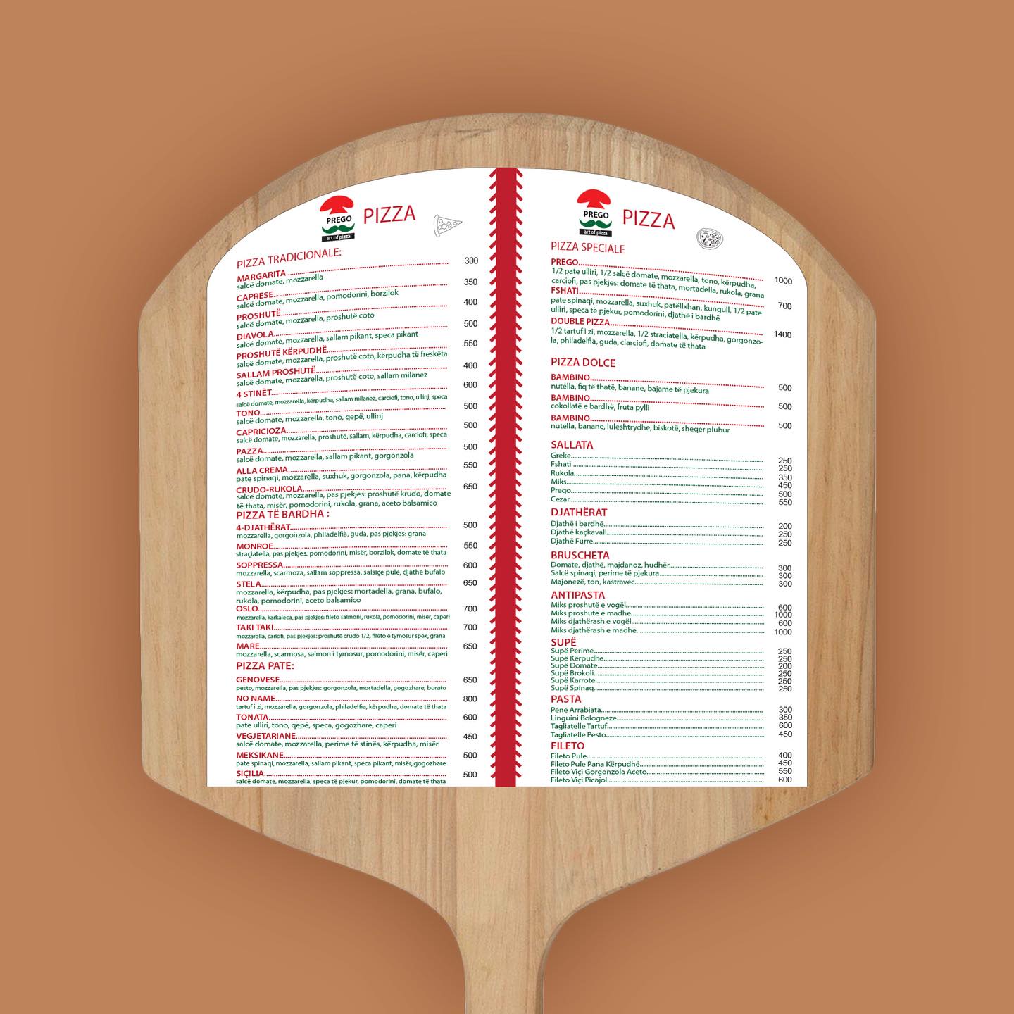 A freshly designed approach to a menu for a pizzeria.